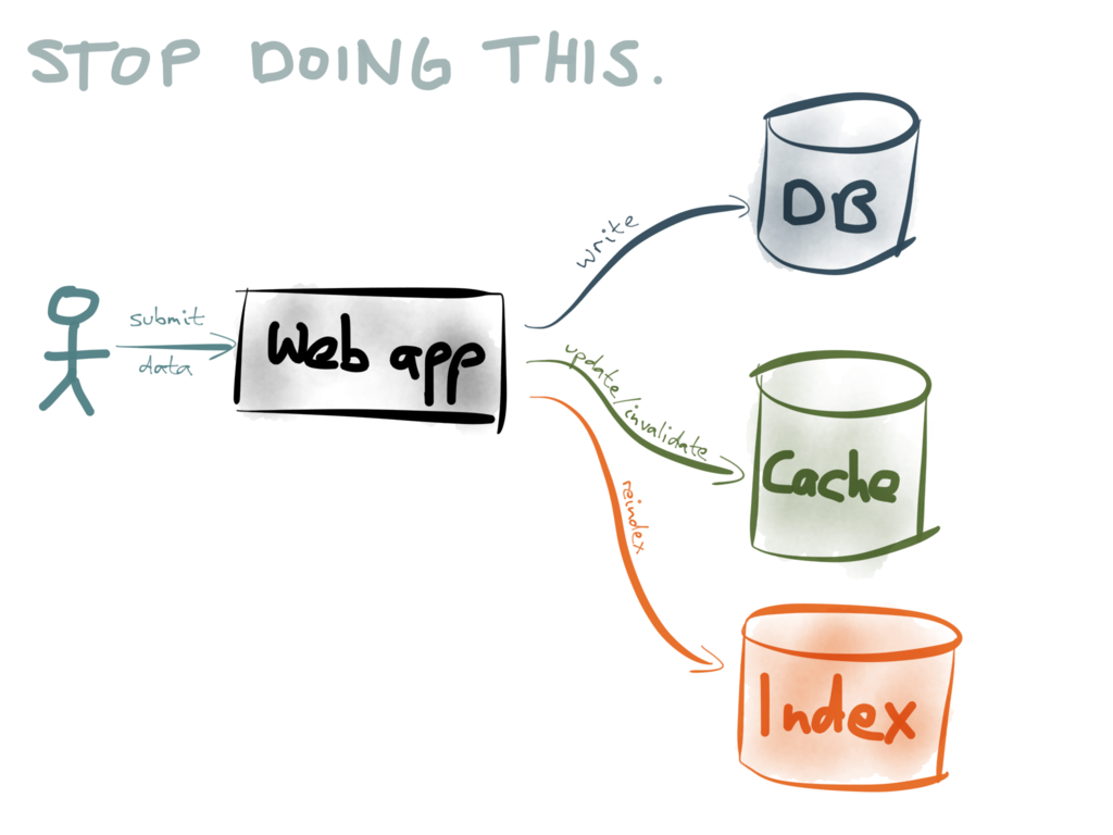 然而之前我就谈到,双写的方法其实是有很多问题的,主要是Race Condition(也叫做资源竞争)和可靠性的方面。如果稍有差异的数据写到2个不同的数据库中,数据库的内容会慢慢的相差甚远,随着时间的推移会变得越来越不一致。 要想从这样的渐进式的数据损坏中恢复是很困难的。